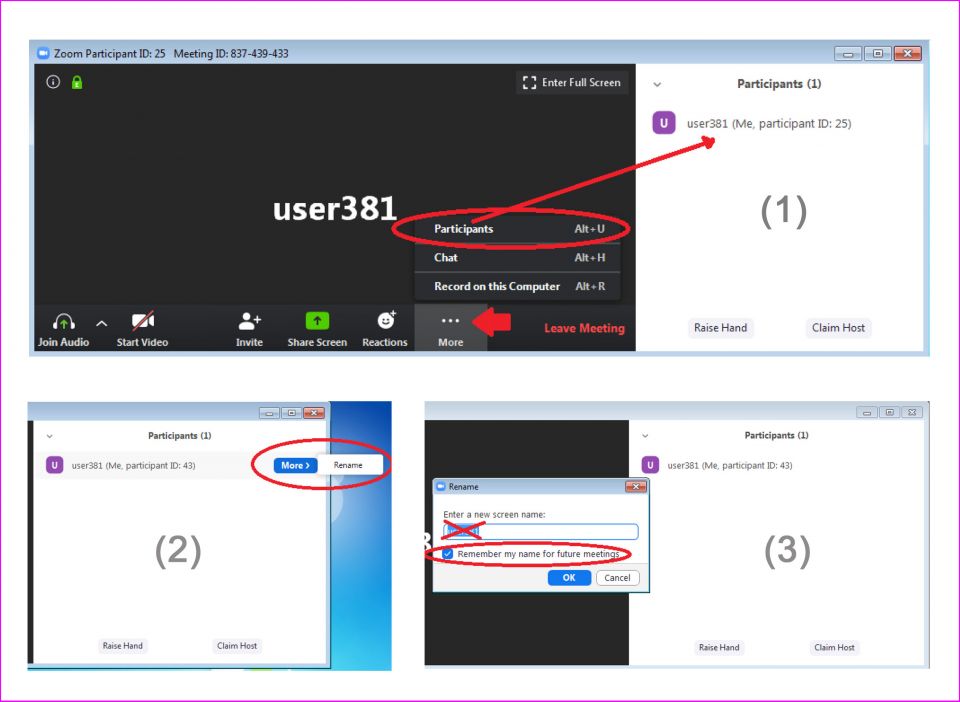 9. Η αλλαγή ονόματος γίνεται από την επιλογή Participants – Σε τρία βήματα όπως παρακάτω: