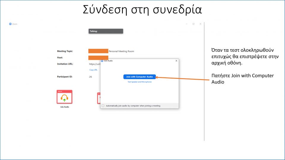 6. Είστε έτοιμοι. Πατήστε Join with Computer Audio