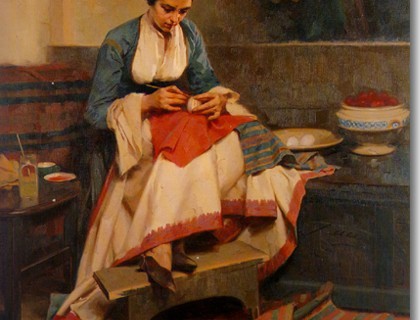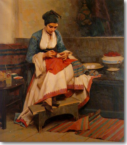 Σκηνή από ένα πασχαλινό έθιμο το βάψιμο των αυγών με κόκκινο χρώμα. Απόστολος Γεραλής (1886-1983)