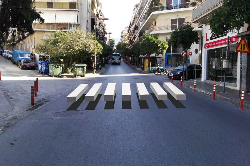 Να χαραχθούν τρισδιάστατες διαβάσεις πεζών, ώστε να μειώνουν ταχύτητα τα οχήματα, ξεκινώντας πιλοτικά από την Γ. Ζωγράφου