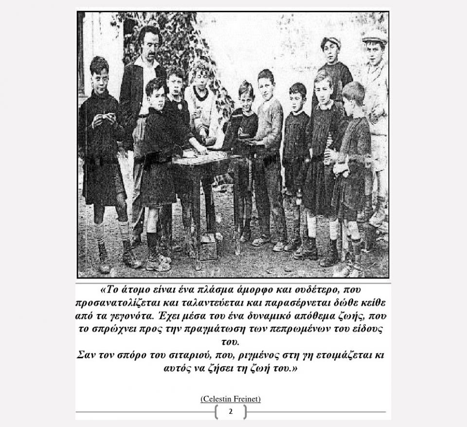 Για την εφαρμογή των αρχών της Παιδαγωγικής Φρενέ στην έκδοση των σχολικών εντύπων,