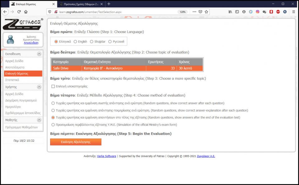 Μετά επιλέξτε: Εκκίνηση Αξιολόγησης (Step 5: Begin the Evaluation), και ξεκινήστε το τεστ!