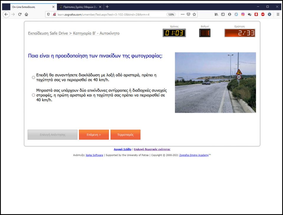 Εάν δεν γνωρίζετε κάποια ερώτηση, η δεν είσαστε σίγουροι μπορείτε να επιλέξετε: “Επόμενη >”.